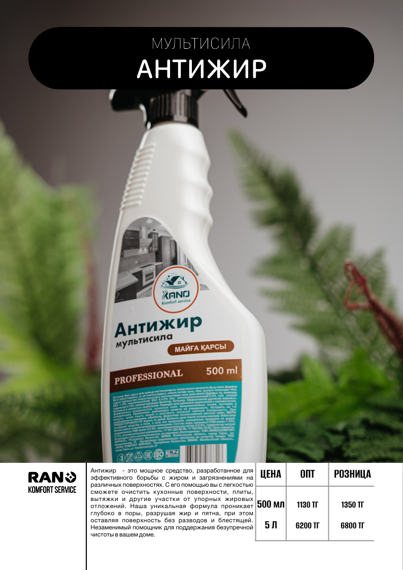Мощное средство, разработанное для эффективного борьбы с жиром и загрязнениями. Вы с легкостью сможете очистить кухонные поверхности, плиты, вытяжки. Наша уникальная формула проникает глубоко в поры, разрушая жир и пятна.