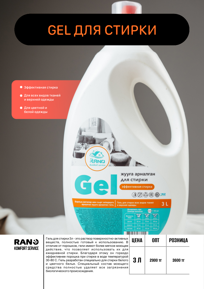 Гель для стирки 3л - это раствор поверхностно-активных веществ, полностью готовый к использованию. В отличие от порошков, гели имеют более мягкое моющее действие, что позволяет использовать их для ежедневной стирки... разработан специально для стирки белого и цветного белья.
