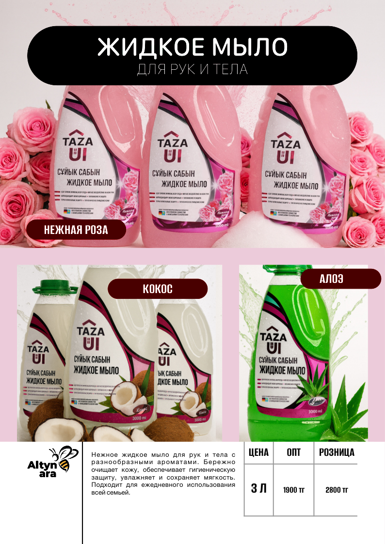 Жидкое мыло Taza Ui (Роза, Кокос, Алоэ)